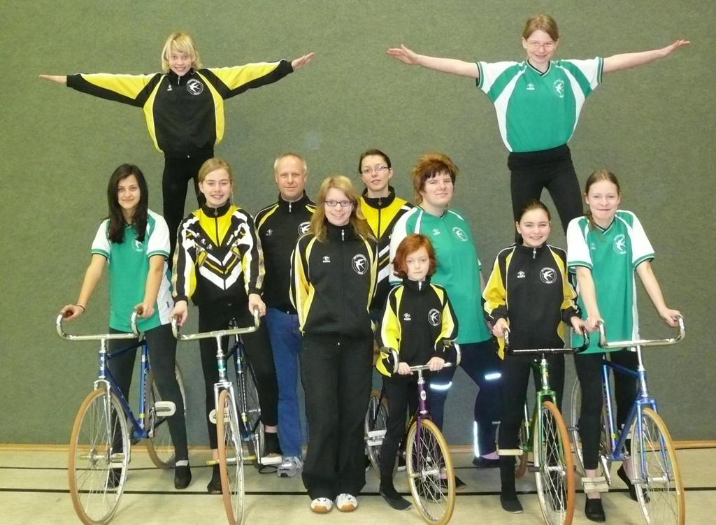Zunächst die Auflösung zum besten Ergebnis aller Zeiten und der tollsten Oelder Kunstradfahrerin in bald 100 Jahren Vereinsgeschichte. Die Rede ist von der neuen Abteilungsleiterin Verena Overbeck, die soeben eine Oelder Ergebnis-Schallmauer durchbrochen hat. Overbeck krönte bei der rekordverdächtigen, vierzehnten Teilnahme an einer Bezirksmeisterschaft ihre Leistung mit 52 ausgefahrenen Wertungspunkten. Im Vorjahr blieb sie bei 49 Punkten hängen. Die Generalprobe bei dem Ranglistenturnier eine Woche zuvor konnte man mit dem gleichen Resultat als „verheißungsvoll“ werten. Aber man darf sich beim Kunstfahren nicht zu früh freuen. Auf diesem hohen Niveau erreicht niemand die maximale Punktzahl der eingereichten Fahrfiguren. Kleine Unsauberkeiten in der Ausführung oder gar „Tipper“ auf dem Boden oder Stürze ahndet das Kampfgericht mit Abzügen. Und „unterm Strich“ zählen die ausgefahrenen Punkte.