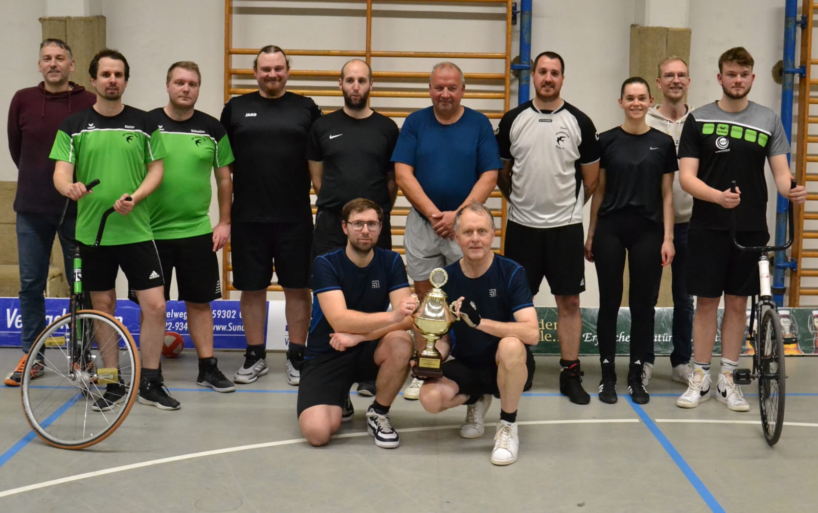 Beim Radball-Sport erstreckt sich eine Saison von Herbst bis Frühling, die Sommermonate dienen als Pause. So sind alle Aktiven im Winter voll im Training für die Vereinsmeisterschaft. Wie gewohnt wurden die Teams per Losentscheid zusammengestellt. Julian Thimm und Christian Noll bildeten Mannschaft eins. Da sie auch in dieser Formation in der Landesliga aktiv sind, war ihnen gleich ein Vorteil gegeben. Mannschaft zwei bestand aus Timo Tillmann und Jörg Gössling. Team drei bildeten Matthias Voßhans und Herbert Overbeck. Beide frisch zusammengestellt, aber mit individueller Klasse – wobei Overbeck als Rentner mit unvergleichlicher Erfahrung stets ernst zu nehmen ist. Team vier setzte sich aus der ersten Mannschaft der Oberliga zusammen, mit Stefan Voßhans und Sebastian Averbeck, die damit sofort eine Favoritenrolle einnahmen. Team fünf bildeten Nicole Overbeck und Kai Bils. Das Losverfahren stellt natürlich die ersten Weichen, doch auf dem Spielfeld werden die Karten neu gemischt.